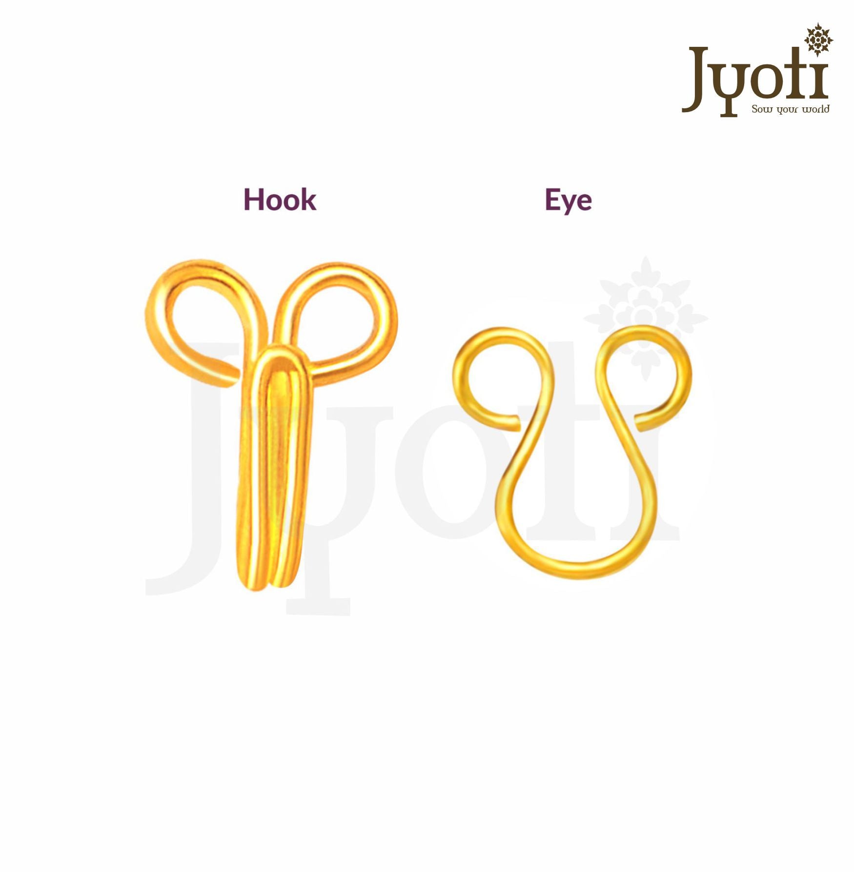 Dress Hook, often called a "hook and eye" closure, is a small but essential fastening device commonly used in clothing and sewing projects. It consists of two parts: a hook and an eye. The hook is usually a small, curved piece of metal with a pointed end, while the eye is a small loop, also typically made of metal. These two components work together to secure garments and ensure they stay closed. The hook is attached to one side of the garment, while the eye is attached to the opposite side. When the hook is inserted into the eye, it creates a secure closure that prevents the garment from gaping or opening unintentionally. It is also available in different finishes and sizes from O, 1, 2, and 3.