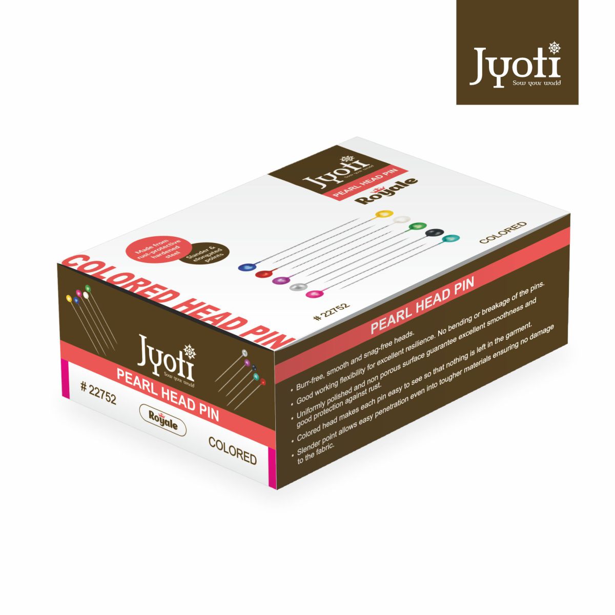 Pearl Head Pins are burr-free, smooth, and snag-free heads. Good working flexibility for excellent resilience. No blending or breakage of the pins. Uniformly polished and non-porous surfaces guarantee excellent smoothness and good protection against rust. The head makes each pin easy to see, so nothing is left in the garments. The slender point allows easy penetration even into tougher material, ensuring no damage to the fabric.