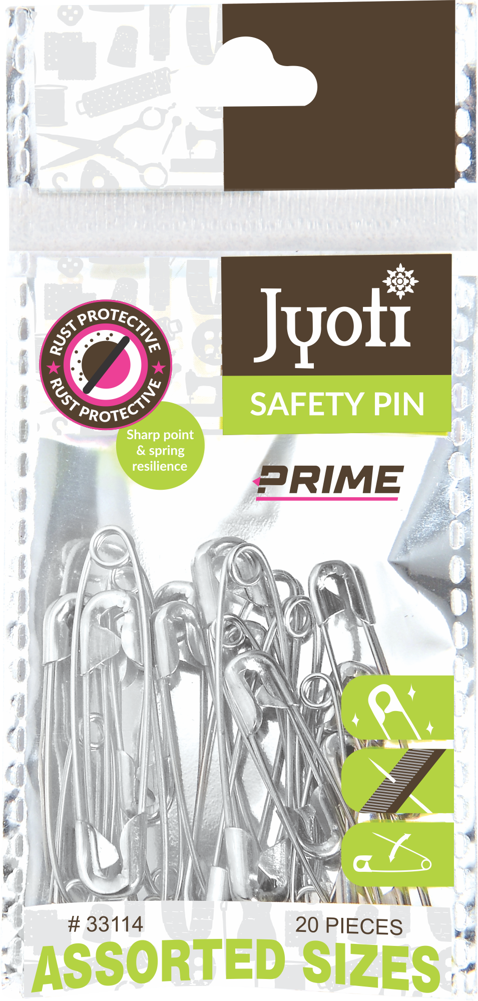 Safety Pins are made from the finest quality steel. Elegantly designed with sharp-point safety pins that match your style. We have crafted a high-quality, unique accessory that can be used in many ways. The style and design come with uncompromising sturdiness and strength, giving you the confidence that it won't bend or damage your fabric.