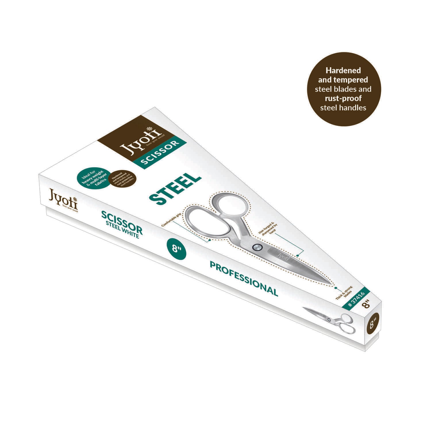 Scissor is made of high-quality steel handles and steel blades. Offers maximum precious and cutting accuracy from the screw joint to the tip. These scissors can withstand repeated sharpening to provide years of reliable use. Orbital reverting for correct tension between the blades.