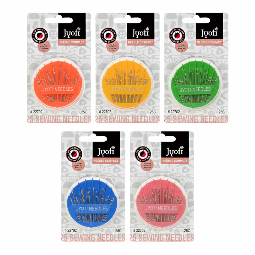 Needle Compact hand sewing needles with needle threader, smooth & snag-free eye, uniformly polished & non-porous surfaces, used for sewing & home purposes. It is a round needle holder made of plastic with a transparent cover containing 25 or 30 sewing and darning needles in various sizes.