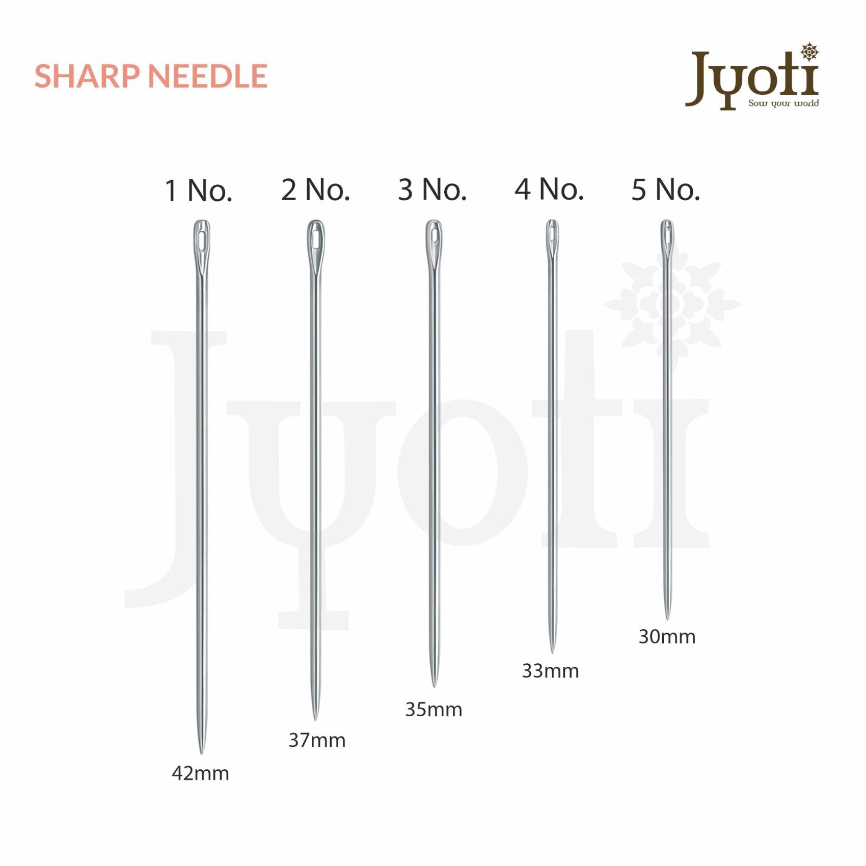 Sharp Hand Sewing Needles are medium-length with a round eye and a sharp point. These are general-purpose sewing needles used by dressmakers around the world for a variety of hand-sewing crafts. The needles come in sizes 1 to 5, and are often used in the design and manufacture of rugs and carpets.