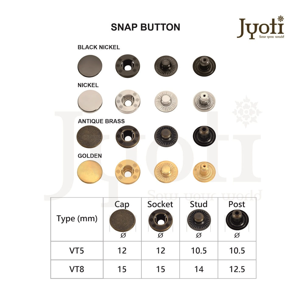 Snap Button provides a secure & low-profile attachment, suitable for all applications that require light fastening strength. The S-type spring in the socket part provides medium fastening strength and guarantees a smooth opening and closing function. Available in rust-proof brass, stainless steel, and rust-protective steel. It has a variety of finishes to choose from.